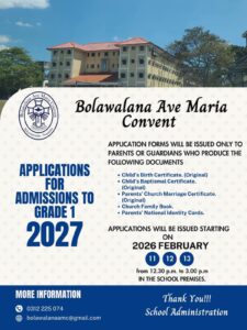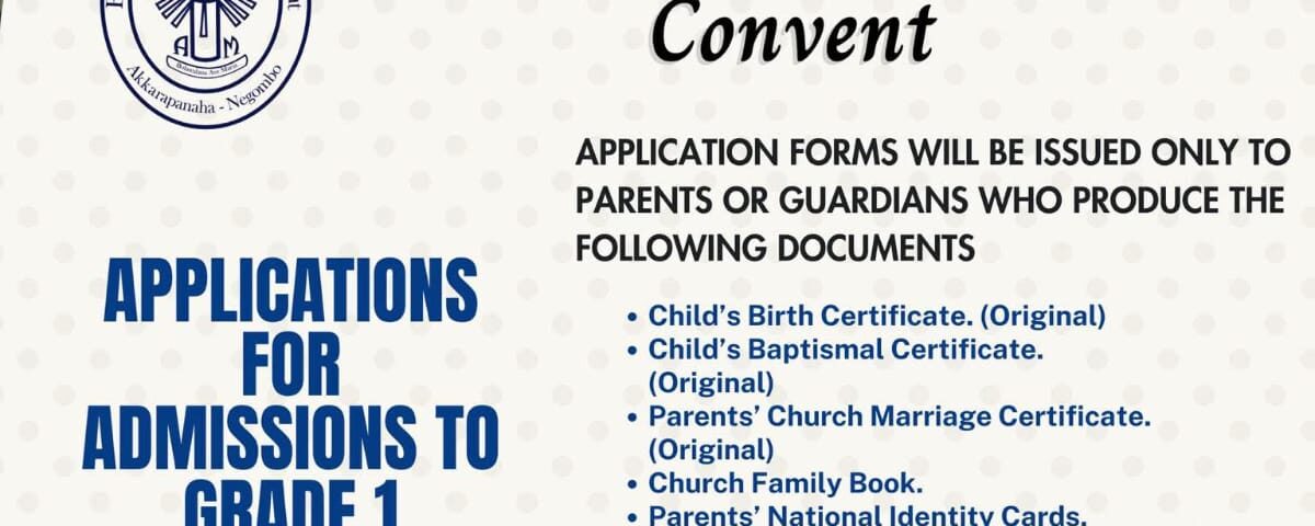 Grade 1 Admissions – 2027 Applications will be issued on 11th, 12th & 13th February 2026 ⏰ 12.30 p.m. – 3.00 p.m. | 📍 School premises Bolawalana Ave Maria Convent